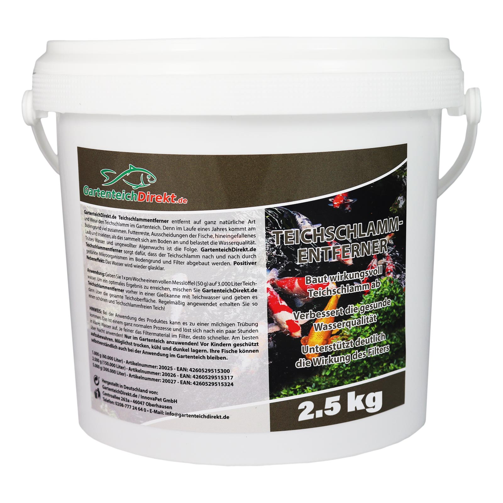 2.5 kg sind ausreichen für bis zu 150.000 Liter Gartenteichwasser.