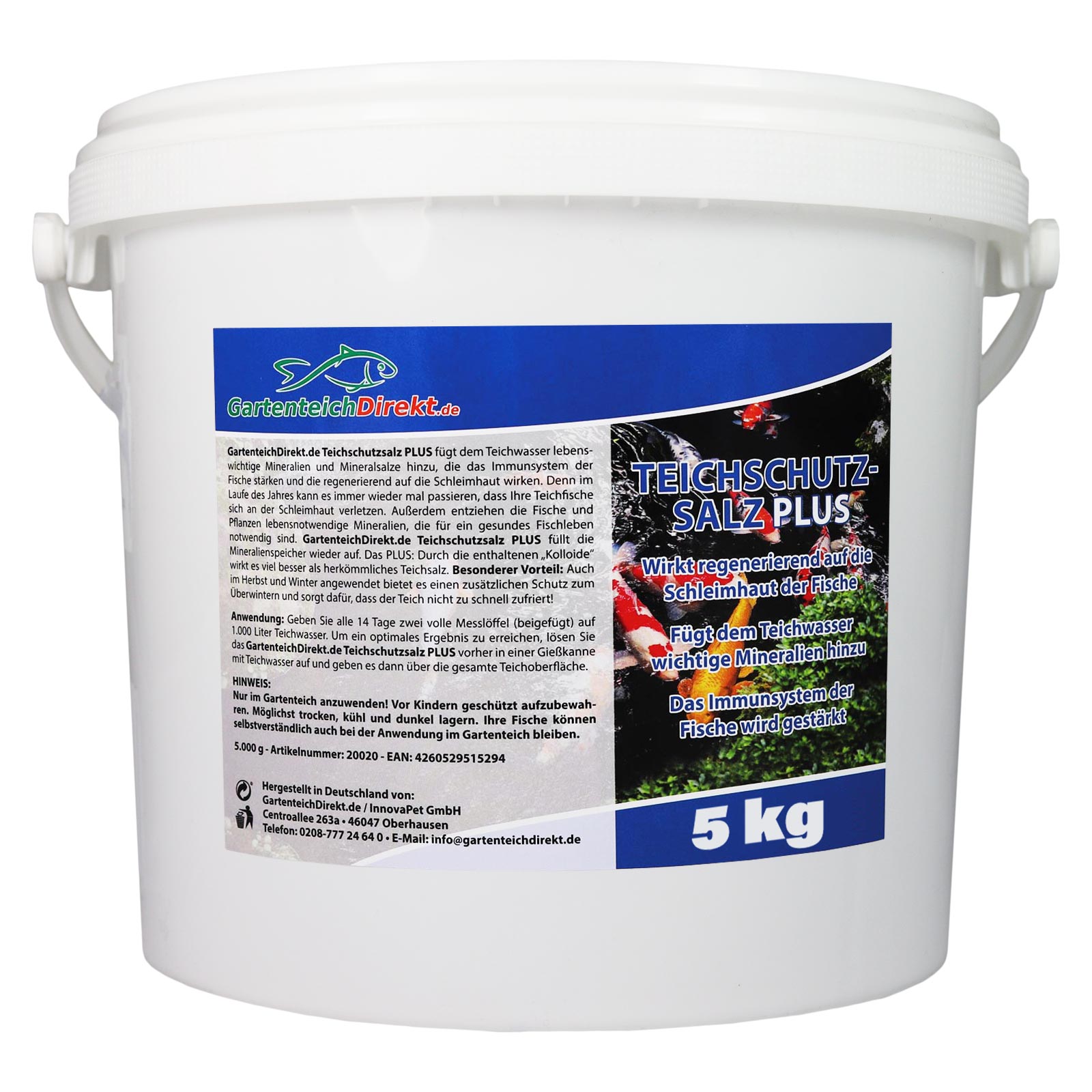 - Teichschutzsalz PLUS: Stärkt die Widerstandskraft der Fische und stabilisiert die Wasserqualität.